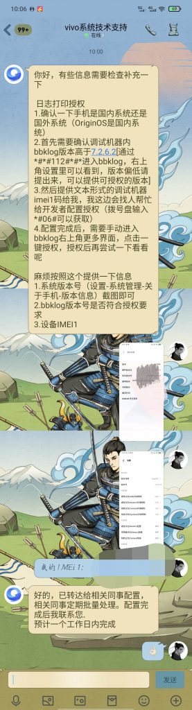 需要将Uimei1发送给vivo进行授权。